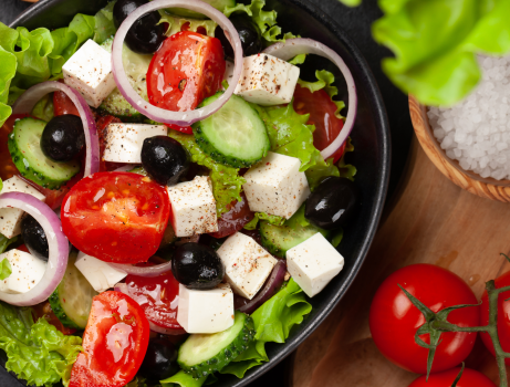 mit Tomaten, Gurken, Oliven, Feta